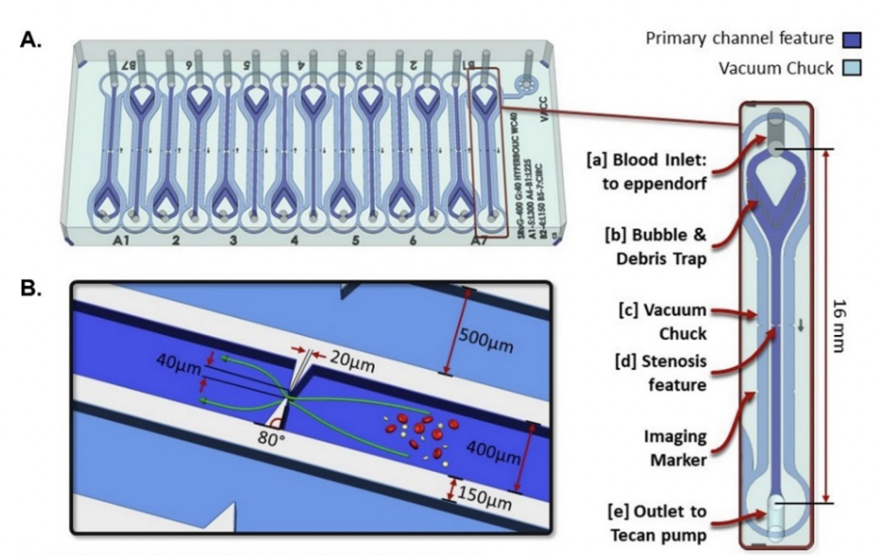 Innovative design for inducing platelet aggregation at specific locations for diagnostic purposes.